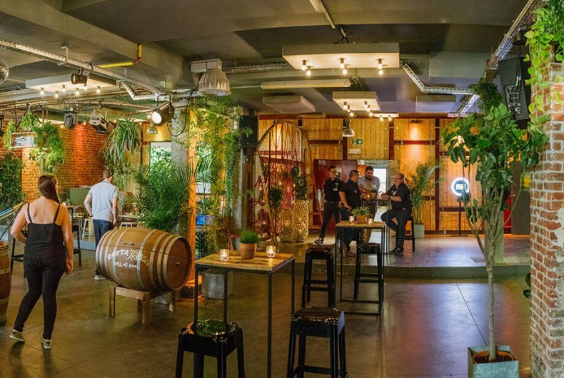 Le soir, c’est la salle idéale pour les concerts, les fêtes ou les bals. Un dancefloor a été équipé dans ce but et un dispositif acoustique a été placé pour protéger les voisin·es.